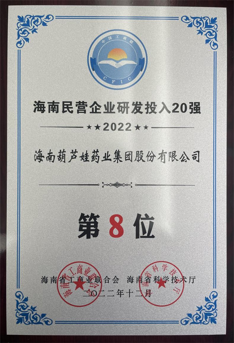12月23日,2022海南民营企业50强和研发投入20强发布会在海口举行。会上发布了“2022海南民营企业50强”“2022海南民营企业研发投入20强”榜单和分析报告。z6com尊龙药业再次荣登两榜,在海南民营企业50强榜单中位列第25位,较去年上升8位,这也是公司连续三年登榜;在海南民营企业研发投入20强中位列第8位,较去年上升7位。