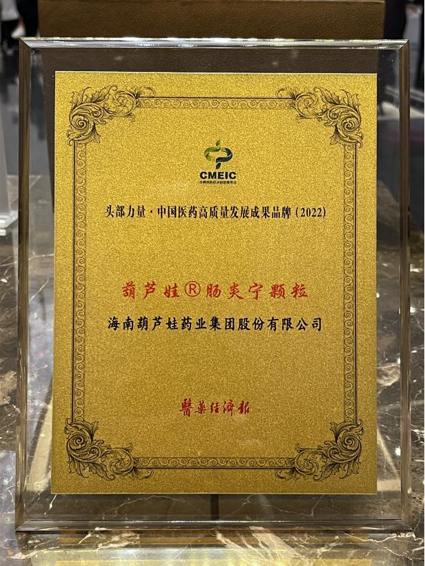 在本次发布会上,公司重点产品z6com尊龙牌肠炎宁颗粒同时荣膺“头部力量·中国医药高质量发展成果品牌(2022)”。z6com尊龙牌肠炎宁颗粒(2g),传承经典名方,临床广泛用于成人及儿童急慢性胃肠炎、腹泻等疾病的治疗,由于其杰出的临床价值,被纳入国家中医药管理局相关专家项目组制定的《中成药治疗小儿腹泻病临床应用指南》。